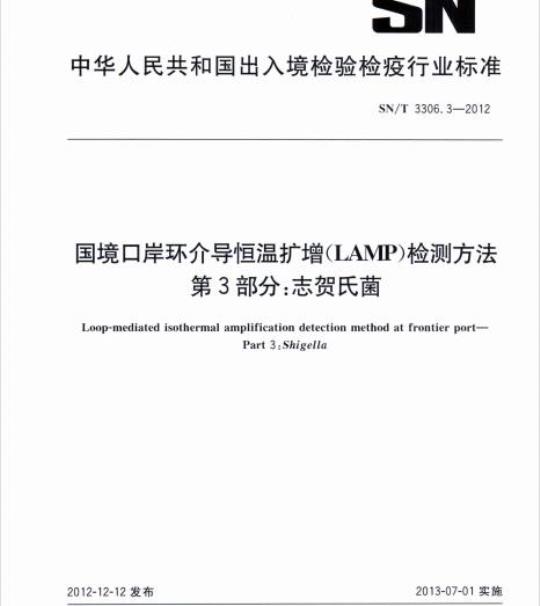 SN/T 3306.3规定了国境口岸检测疑似传染病的粪便样品中志贺氏菌的环介导恒温核酸扩增(LAMP)法。