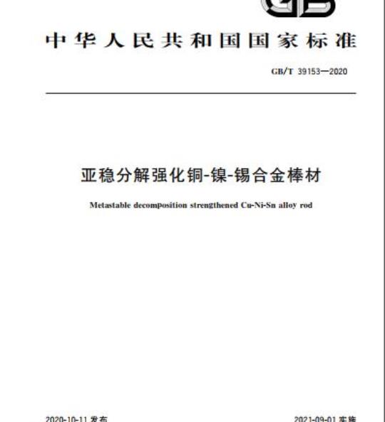 GB/T 39153-2020.Metastable decomposition strengthened Cu-Ni-Sn alloy rod.