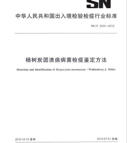 SN/T 3434适用于进出境植物及其产品中杨树炭团溃疡病菌的检疫和鉴定。