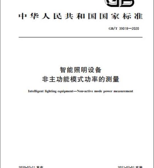 GB/T 39018规定了智能照明设备在非主功能模式下消耗功率的测量方法。