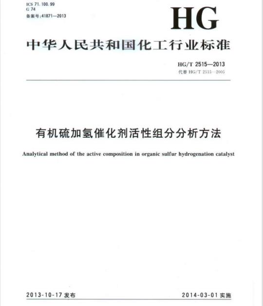 中文名称:代替 HG/T 2515-2005 有机硫加氢催化剂活性组分分析方法