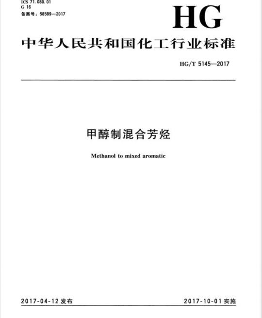 HG/T 5145适用于以甲醇为原料生产的混合芳烃产品。