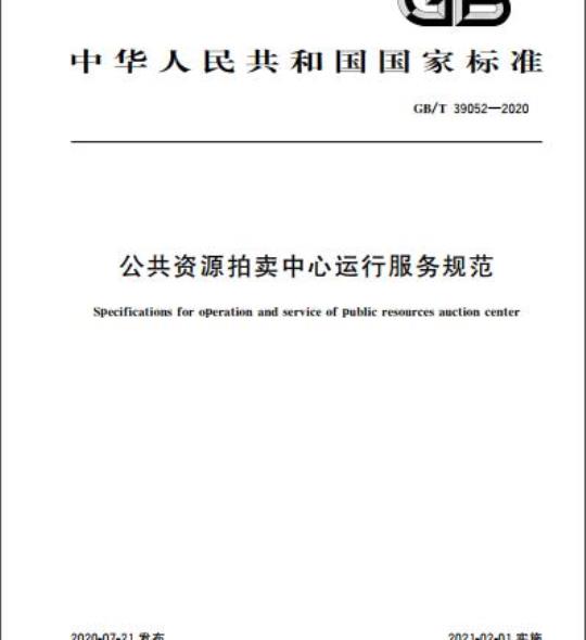 GB/T 39052规定了公共资源拍卖中心运行服务的基本原则与要求、场所及设施设备要求、网络拍卖平台要求、机构及人员、运行服务流程、监督与评价。