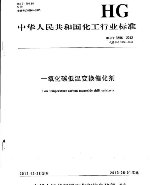本标准按照GB/T1.12009给出的规则起草。本标准代替HG35562004《一氧化碳低温变换催化剂》,与HG35562004相比,除编辑性修改外主要技术变化如下: