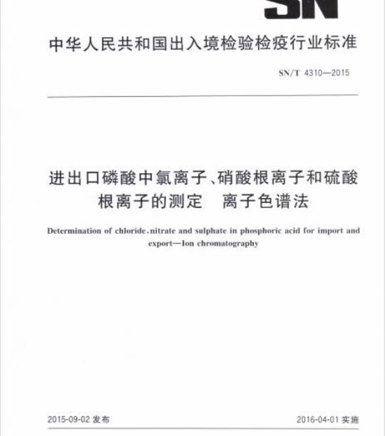 SN/T 4310规定了进出口磷酸中氯离子、硝酸根离子、硫酸根离子的离子色谱测定方法。
