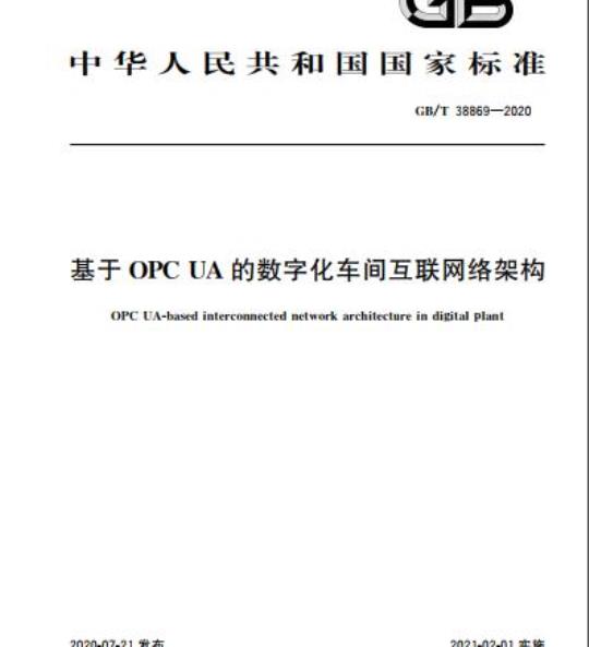 GB/T 38869规定了数字化车间互联网络的层次结构、信息流,以及基于OPC UA的网络架构。