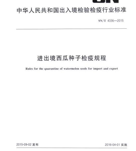 SN/T 4336规定了进出境西瓜种子的检疫方法及处理原则。