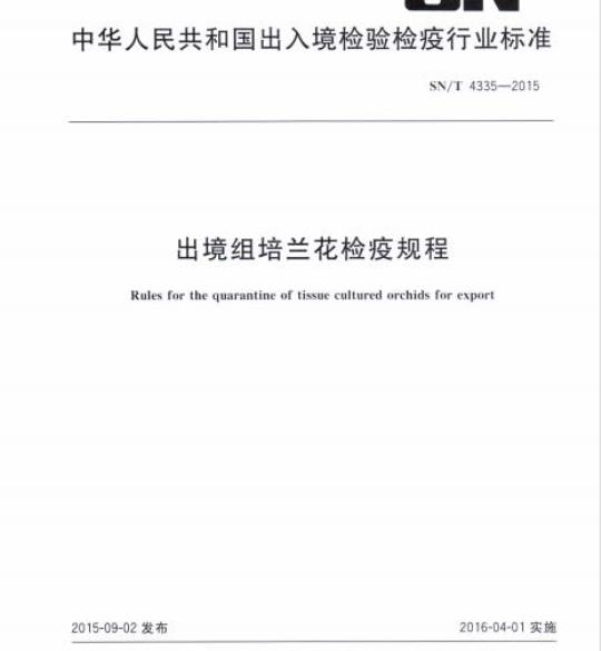 SN/T 4335规定了出境组培兰花的检疫方法及处理原则。