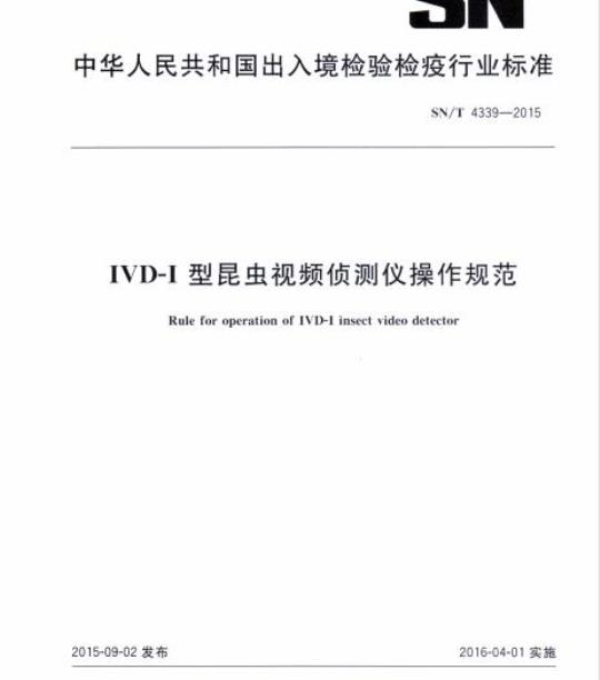 SN/T 4339规定了IVD-I型昆虫视频侦测仪的设备硬件和软件的构成和操作方法,规定了该设备在现场查验中的使用规范。