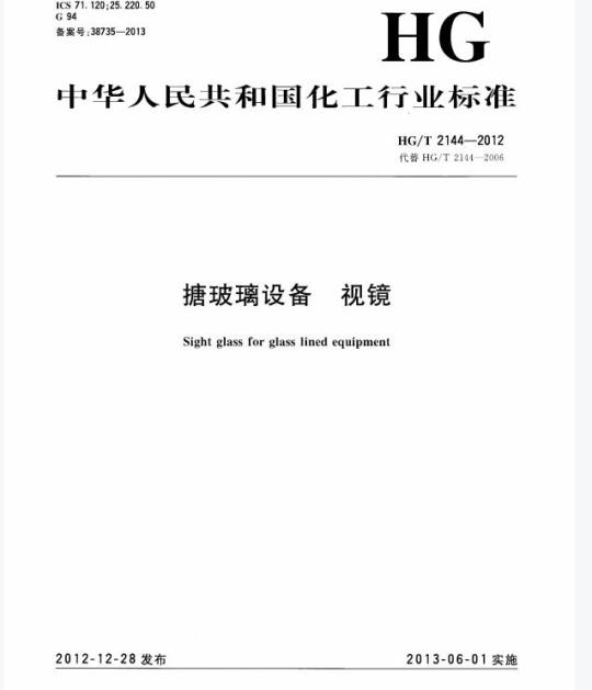 中文名称:代替 HG/T 2144-2006 搪玻璃设备 视镜