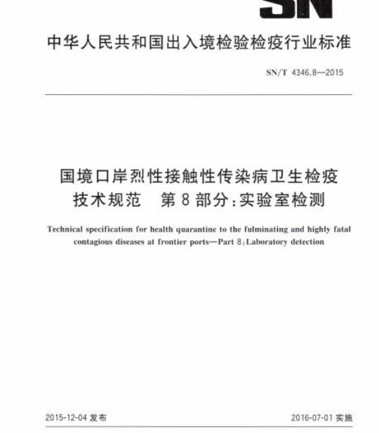 SN/T 4346.8适用于口岸人出境人员烈性接触性传染病实验室检测。