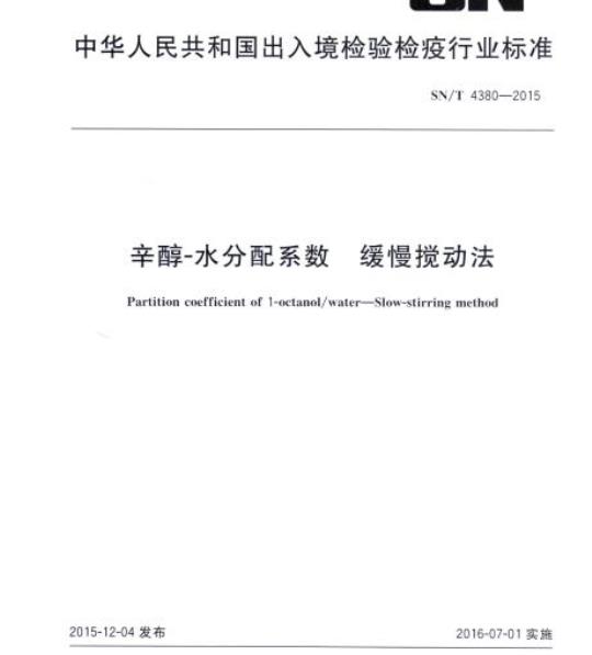 SN/T 4380规定了化学品的辛醇/水分配系数的缓慢搅动测定方法。