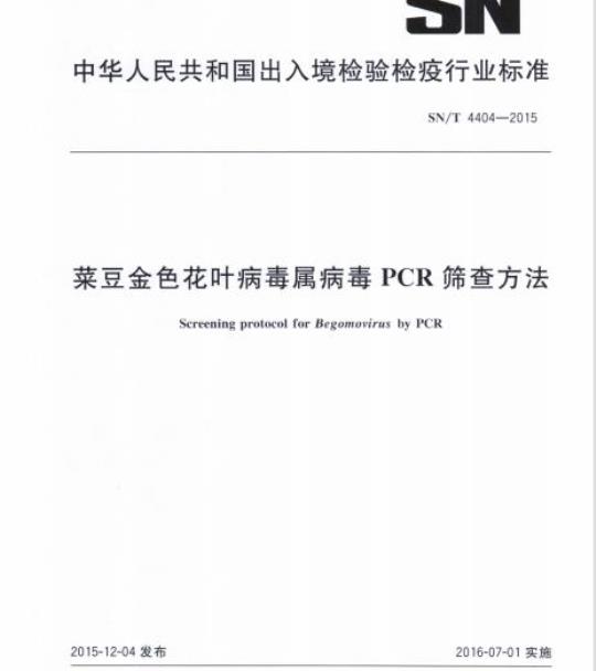 SN/T 4404规定了菜豆金色花叶病毒属病毒PCR筛查方法。