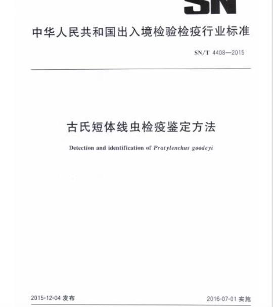 SN/T 4408规定了古氏短体线虫的检疫鉴定方法。