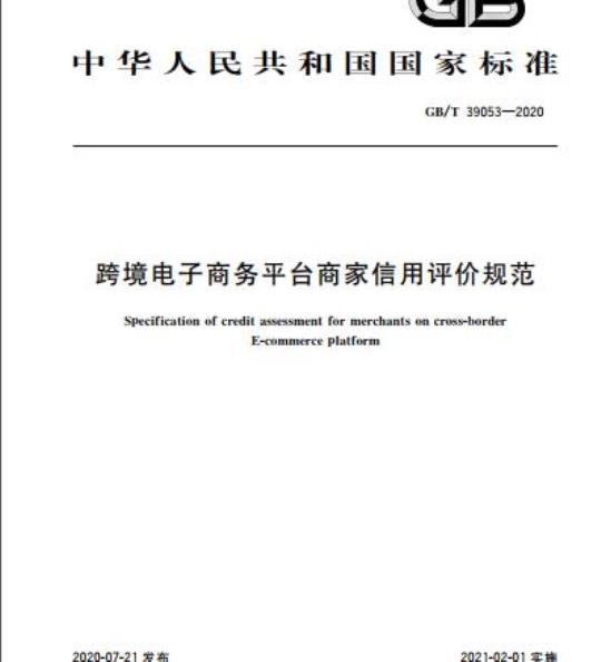 跨境电子商务平台商家信用评价规范GB/T39053—2020