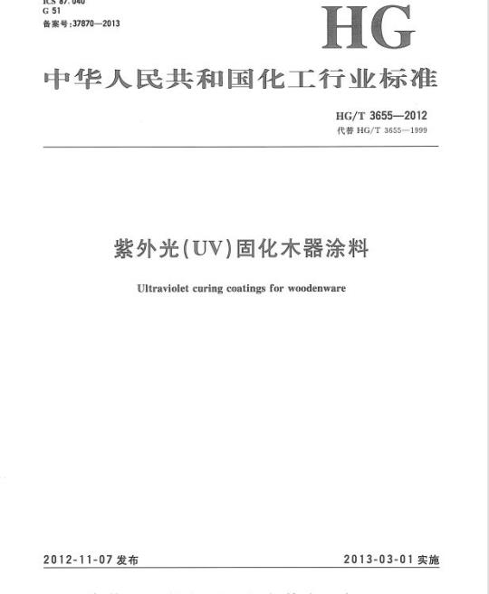中文名称:代替 HG/T 3655-1999 紫外光(UV)固化木器涂料