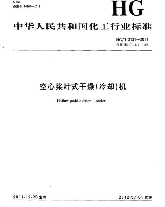 HG/T 3131-2011.Hollow paddle drier (cooler).