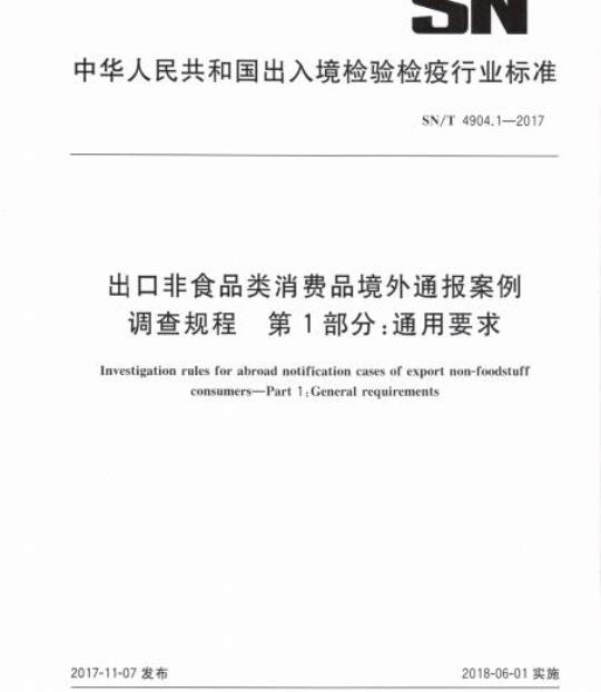 SN/T 4904.1适用于出人境检验检疫机构(以下简称“检验检疫机构”)对我国出口非食品类消费品境外通报案例开展调查工作的综合管理。