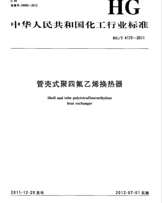 HG/T 4172适用于以聚四氟乙烯为材料制作的管壳式聚四氟乙烯换热器。