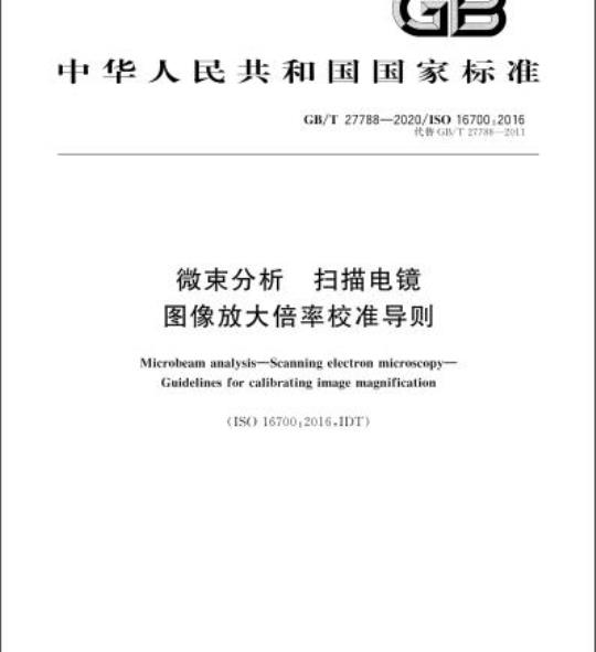 GB/T 27788规定了使用适当的参考物质对扫描电镜(SEM)图像的放大倍率进行校准的方法。