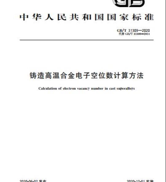 GB/T 31309-2020.Calculation of electron vacancy number in cast superalloys.