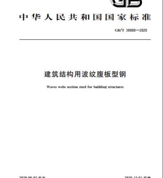 GB/T 38808适用于建筑结构用波纹腹板型钢(以下简称型钢)。