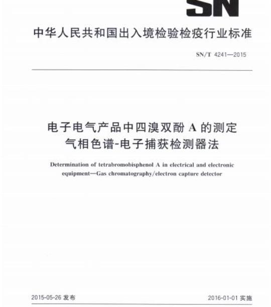 SN/T 4241规定了电子电气产品塑料电子元器件中四溴双酚A ( Tetrabromobisphenol A,简称TBBPA)的气相色谱电子捕获检测器法。