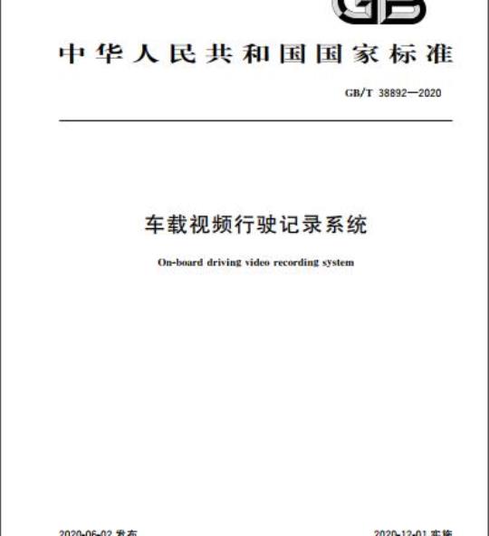 GB/T 38892规定了车载视频行驶记录系统的要求及试验方法。