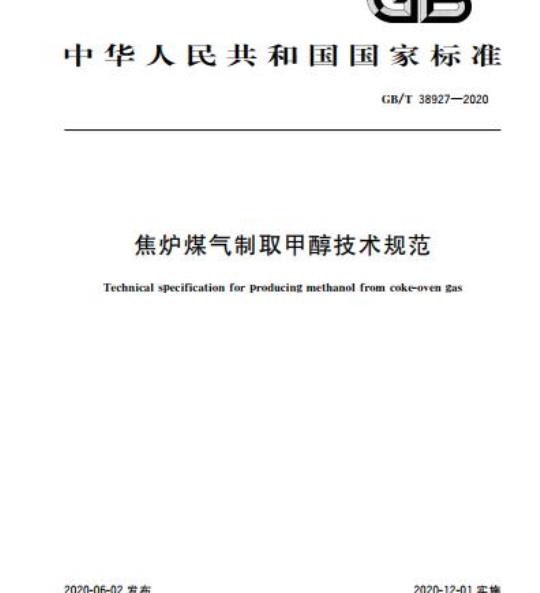 GB/T 38927适用于炼焦行业循环产业链改造中以焦炉煤气为原料制取甲醇项目的新建、改建及管理。