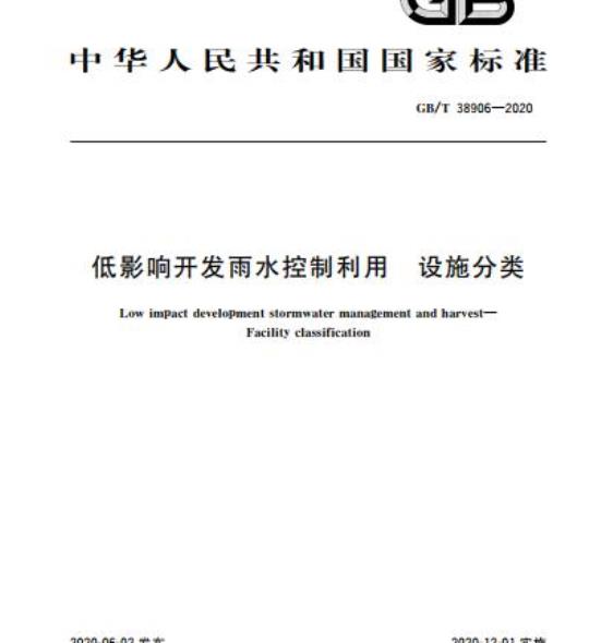 GB/T 38906适用于低影响开发雨水控制利用设施的分类与编码。