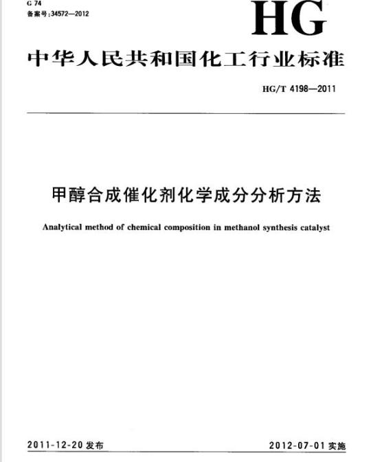 HG/T 4198规定了甲醇合成催化剂化学成分的分析方法。