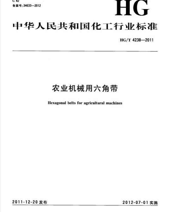 HG/T 4238适用于农业机械用双面传动的六角带。