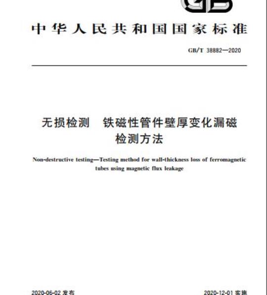 GB/T 38882规定了对铁磁性管件壁厚损失采用外置磁化方式进行漏磁检测的方法。