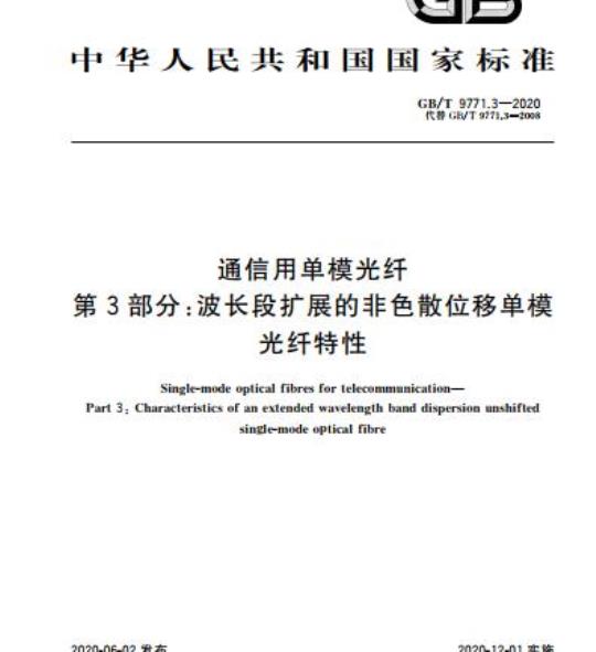 GB/T 9771.3-2020.Single-mode optical fibres for telecommunication-Part 3: Characteristics of an extended wavelength band dispersion unshifted single-mode optical fibre.