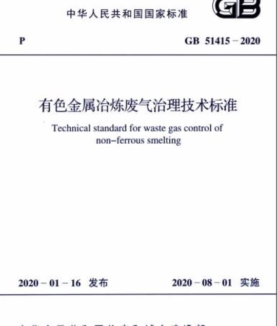 GB 51415-2020.Technical standard for waste gas control of non-ferrous smelting.