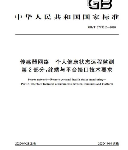 GB/T 37733.2适用于个人健康状态远程监测传感器网络终端与平台的接口设计、开发和部署。