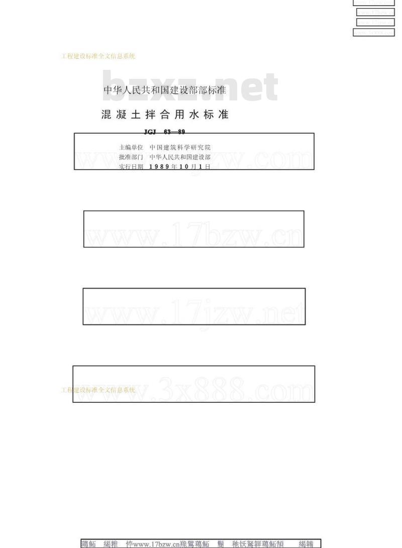 JGJ 63-1989 混凝土拌合用水标准JGJ63-89 JGJ63-1989 标准下载解压密码:www.bzxz.net