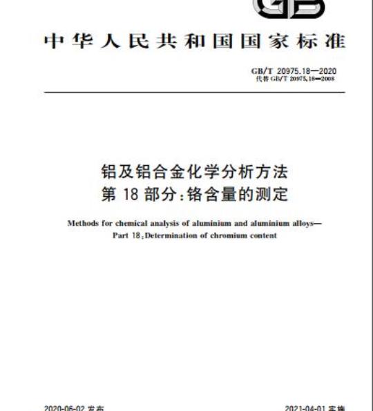 GB/T 20975.18-2020.Methods for chemical analysis of aluminium and aluminium alloys-Part 18 : Determination of chromium content.