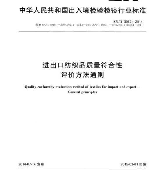 SN/T 3980适用于各类进出口纺织品质量符合性评价,是检验检疫机构开展进出口纺织品质量符合性评价工作应该遵循的程序性规则,也可作为进出口纺织品生产经营企业进行质量控制的指导性文件。