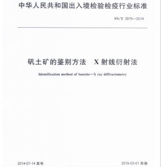 SN/T 3975规定了X射线衍射法鉴别矾土矿的方法。
