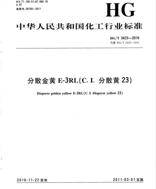 HG/T 3423适用于分散金黄 E-3RL产品质量的控制。