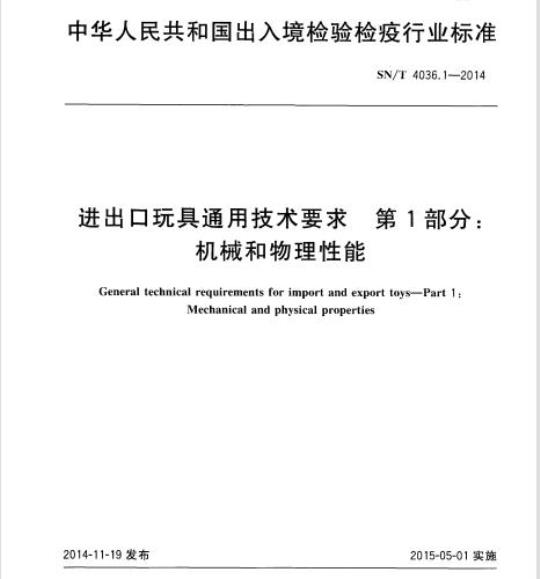 SN/T 4036.1规定了进出口玩具机械和物理性能的技术要求和检测方法。