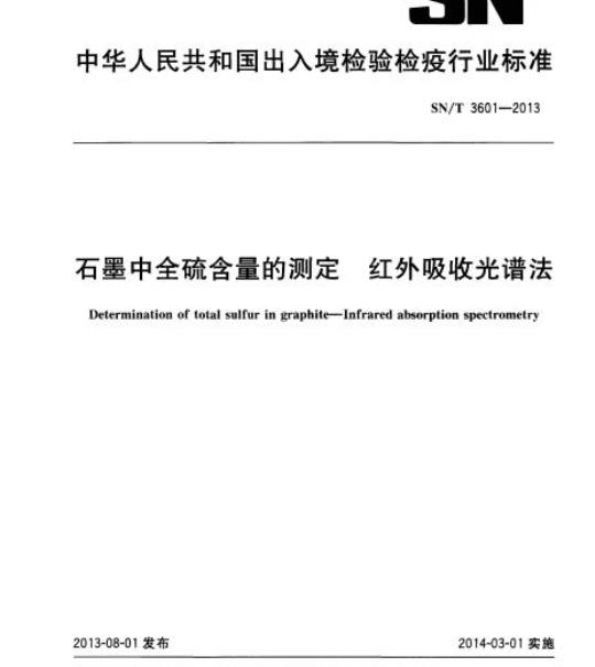 SN/T 3601-2013.Determination of total sulfur in graphite-Infrared absorption spectrometry.