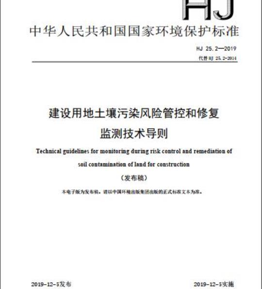 HJ 25.2-2019.Technical guidelines for monitoring during risk control and remediation of soil contanination of land for construction.