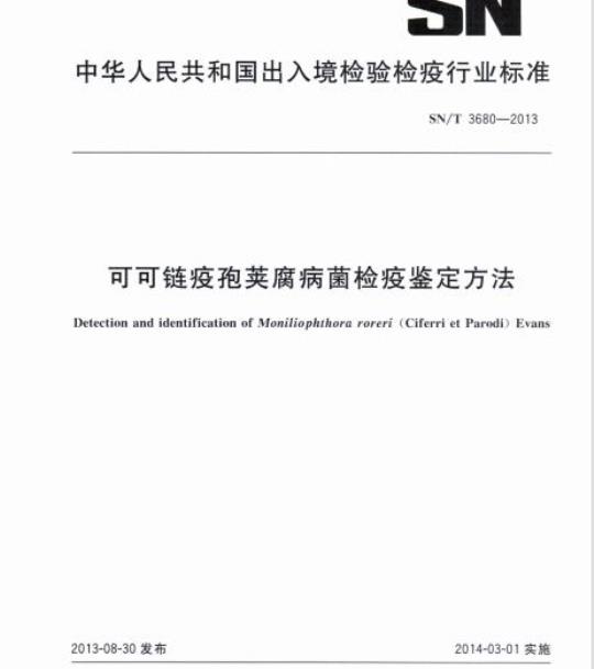 SN/T 3680规定了可可链疫孢荚腐病菌检疫鉴定方法。
