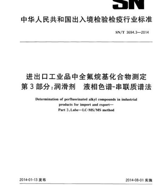 讲出口工业品中全氟烷基化合物测定第3部分:润滑剂液相色谱-串联质谱法SN/T3694.3—2014