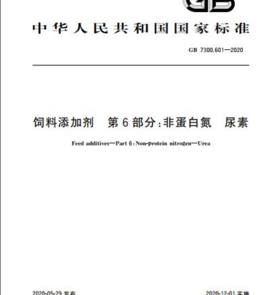 GB 7300.601适用于氨和二氧化碳反应制成的尿素,作为非蛋白氮类饲料添加剂。