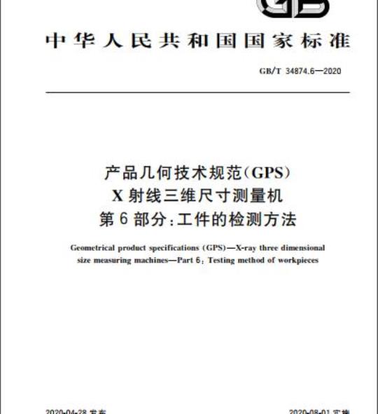 GB/T 34874.6-2020.Geometrical product specifications (GPS)-X-ray three dimensional size measuring machines-Part 6: Testing method of workpieces.