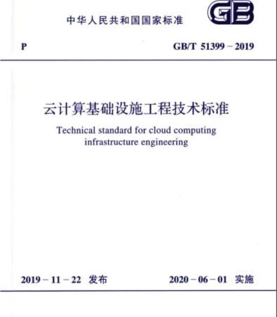 住房和城乡建设部关于发布国家标准《云计算基础设施工程技术标准》的公告现批准《云计算基础设施工程技术标准》为国家标准,编号为GB/T51399一2019,自2020年6月1日起实施。本标准在住房和城乡建设部门户网站(mohurd.gov.cn)公开,并由住房和城乡建设部标准定额研究所组织中国计划出版社出版发行。