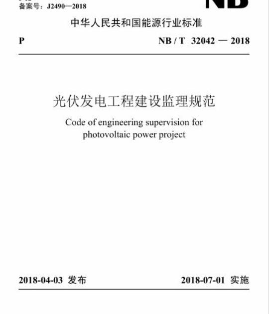 Code of engineering supervision forphotovoltaic power projectNB/T32042—2018